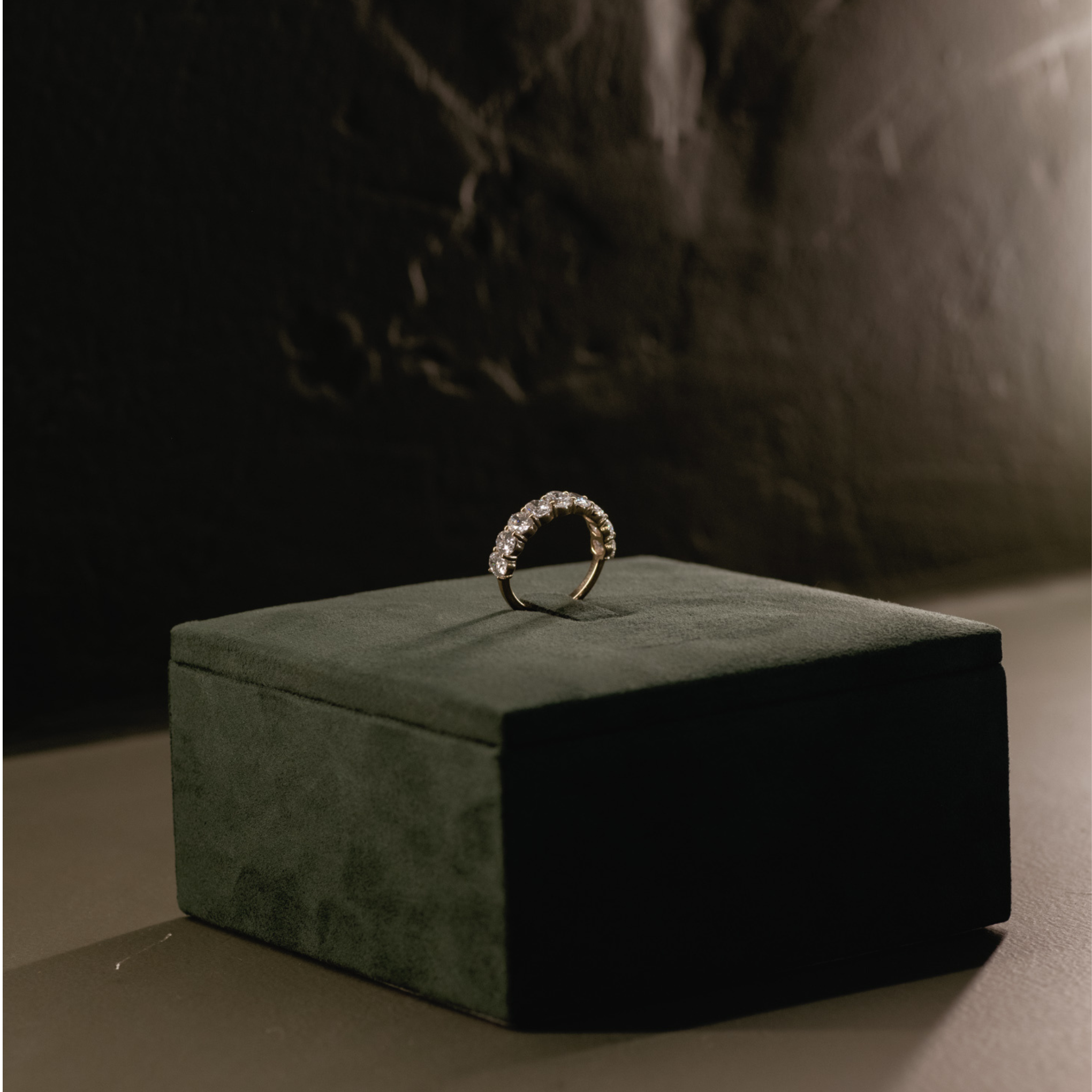 Each bespoke ring typically takes 6–8 weeks from design approval to completion. This timeframe allows us to source your gemstone, complete CAD designs, and finish the piece with our jewellers.