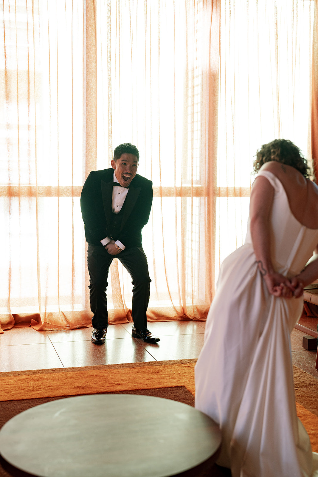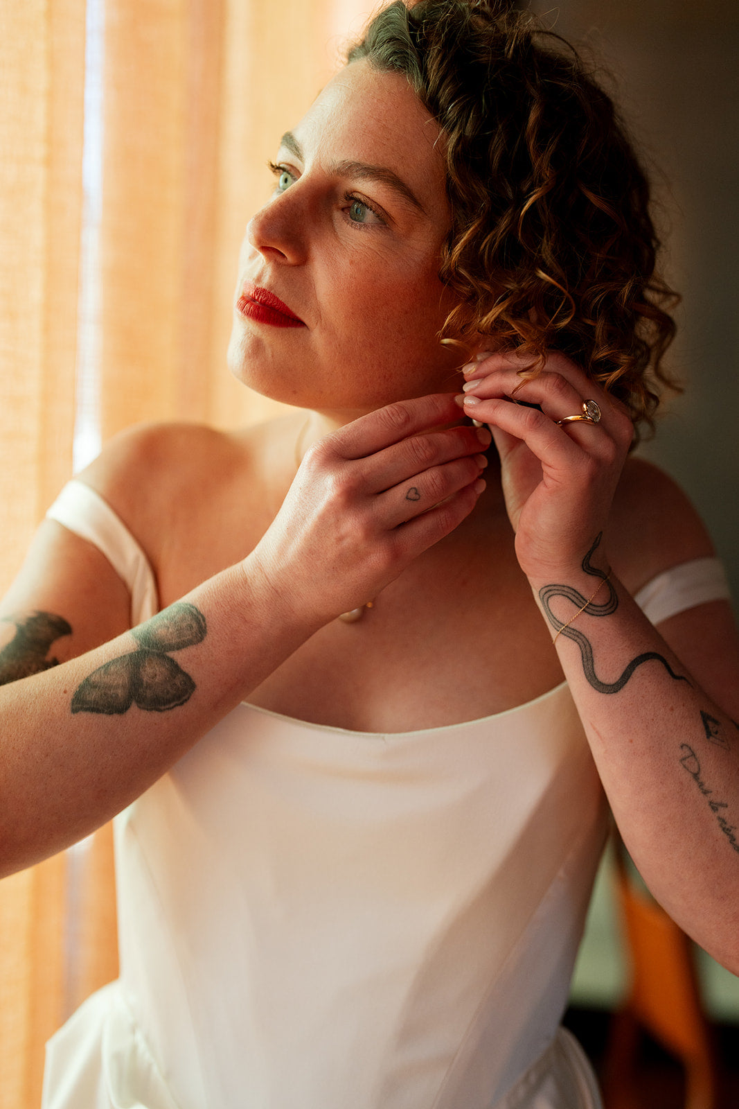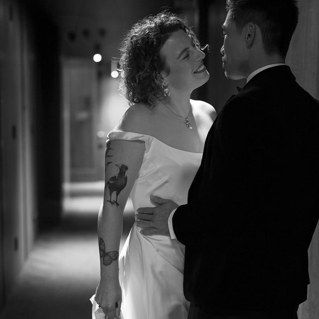 Alex chose an Organic Wrap Oval design, paired with a custom-fitted wedding band—both in 14ct yellow gold.