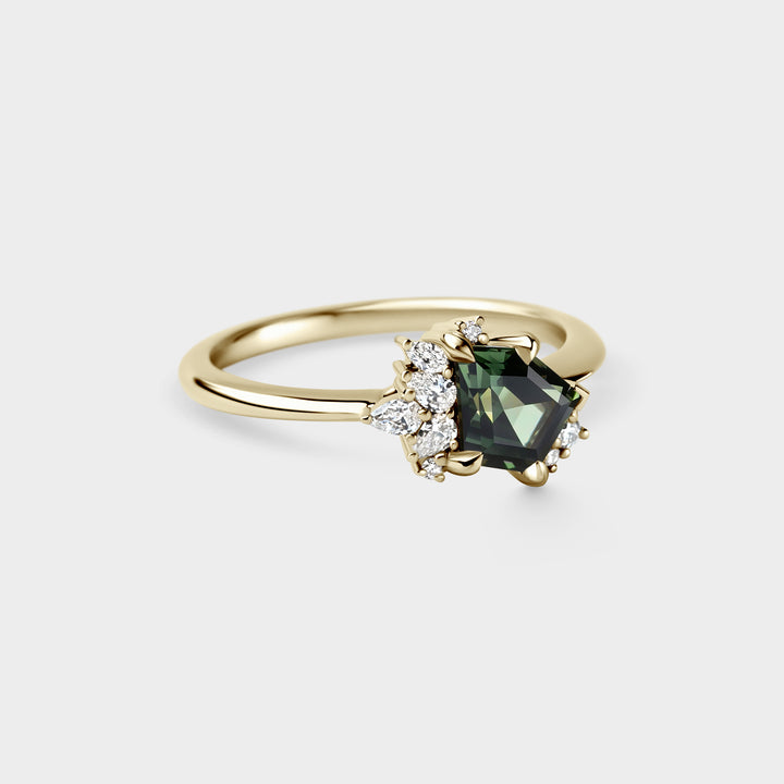 1.24ct Irregular Cluster of Blue/Green Parti Sapphire & Diamond