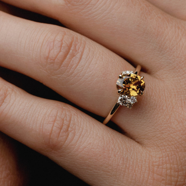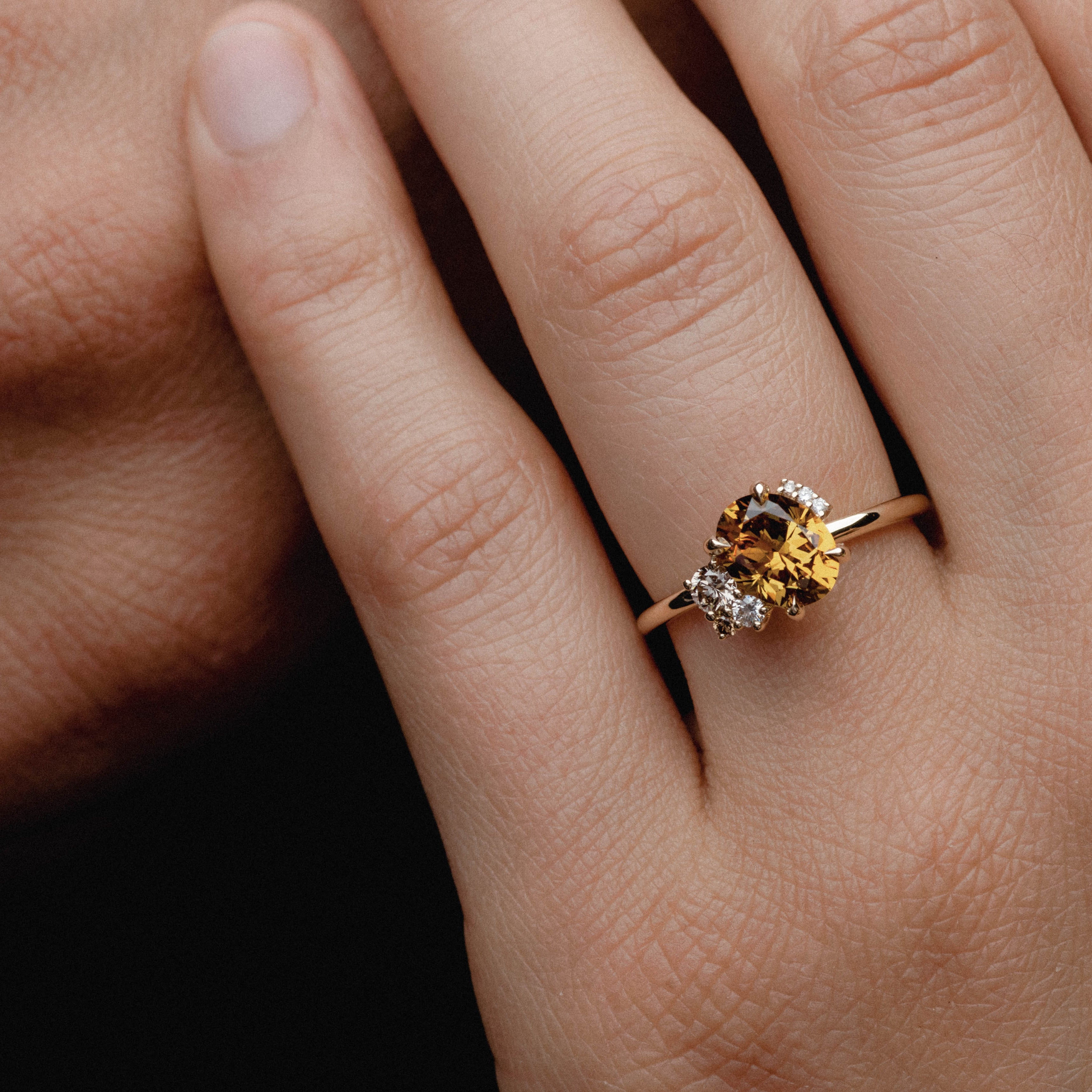 1.73ct Off-Angle Asymmetrical Cluster of Orange Sapphire & Diamond