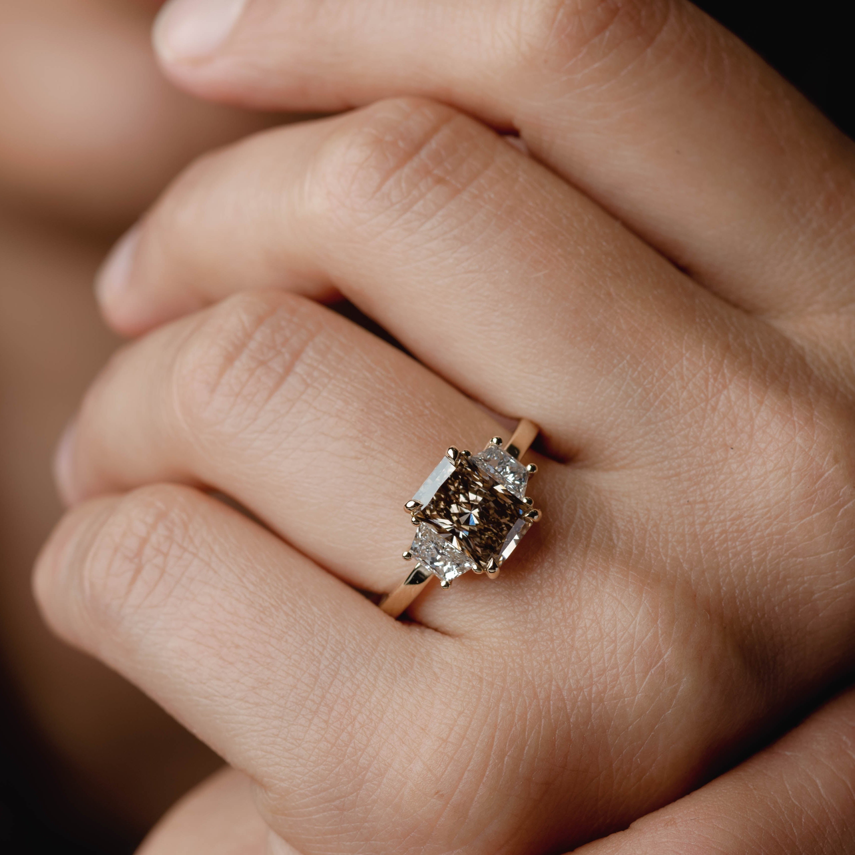2.01ct Three Stone of Champagne Radiant & Trapezoid
