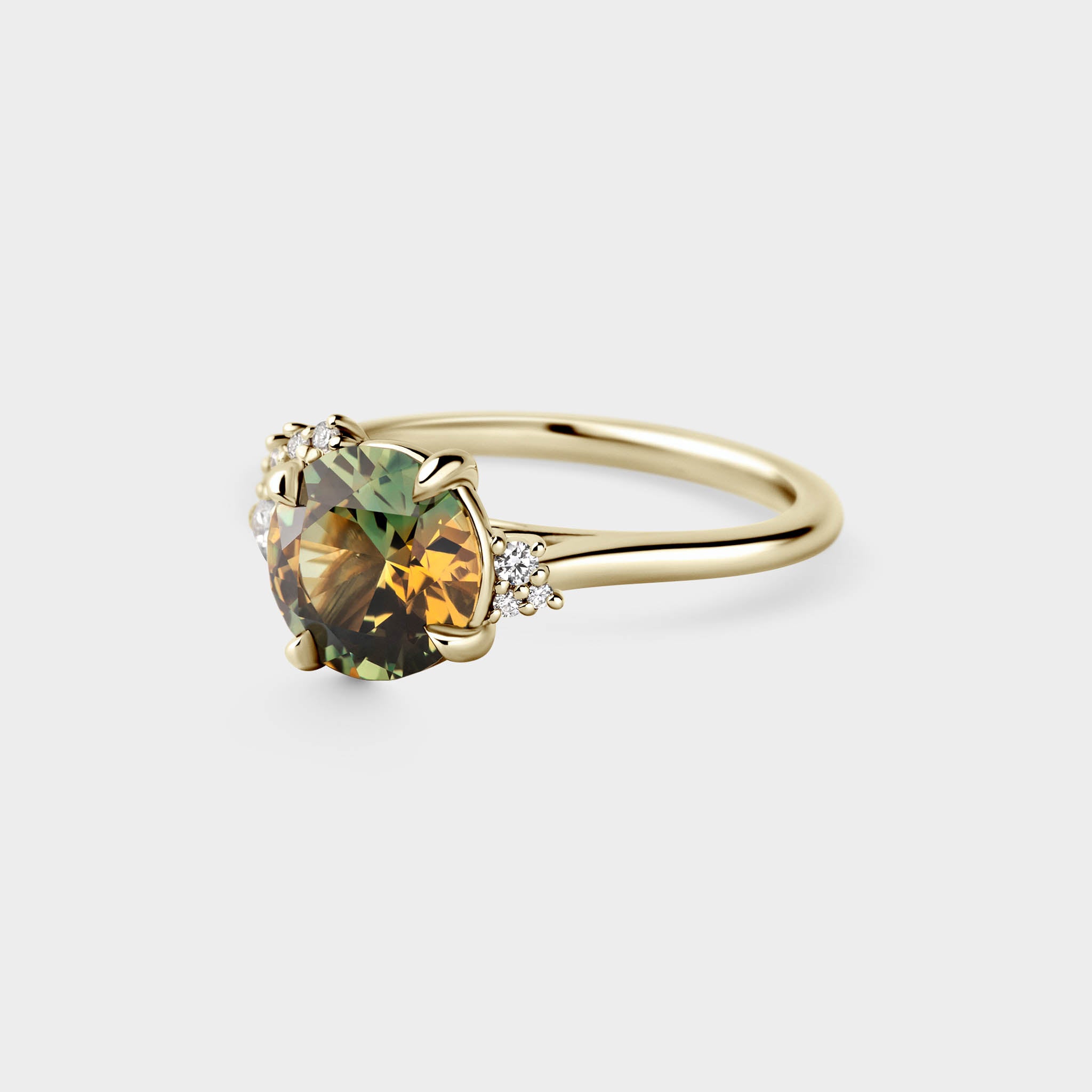 2.20ct Asymmetrical Cluster of Green/Orange Parti Sapphire & Diamond
