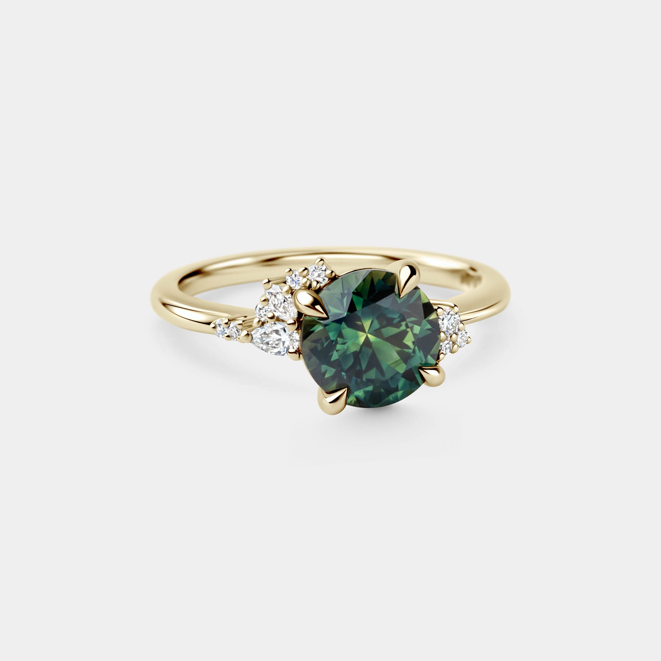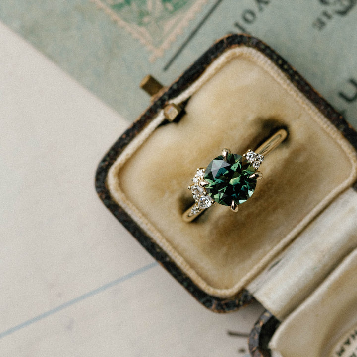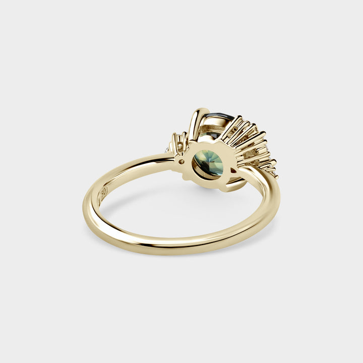 2.26ct Asymmetrical Cluster of Green/Blue Parti Sapphire & Diamond