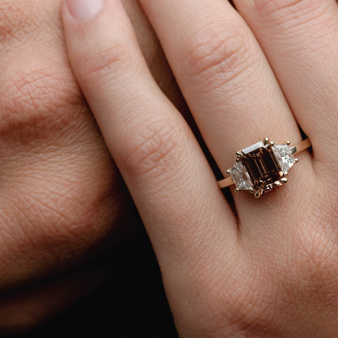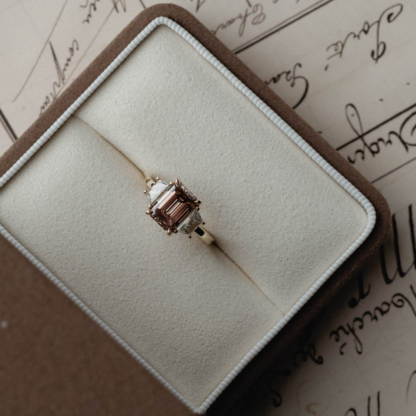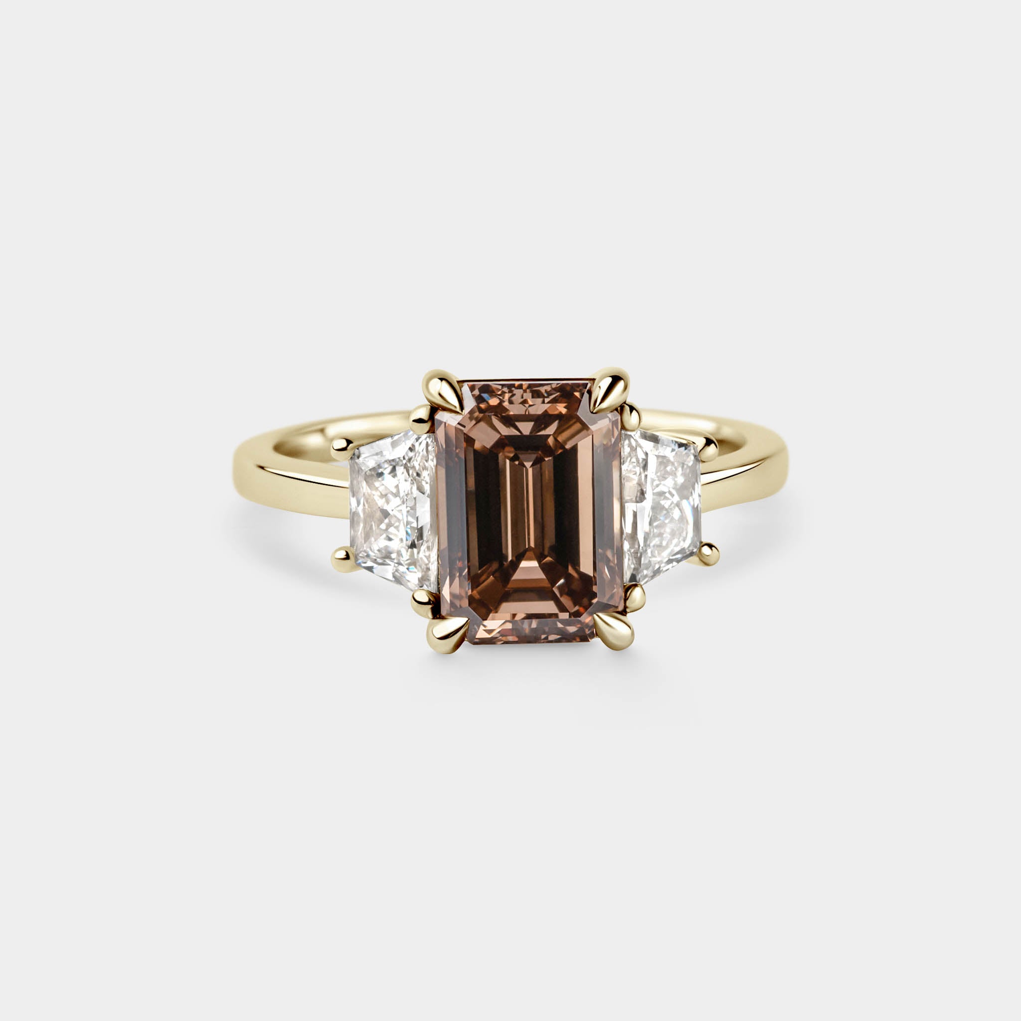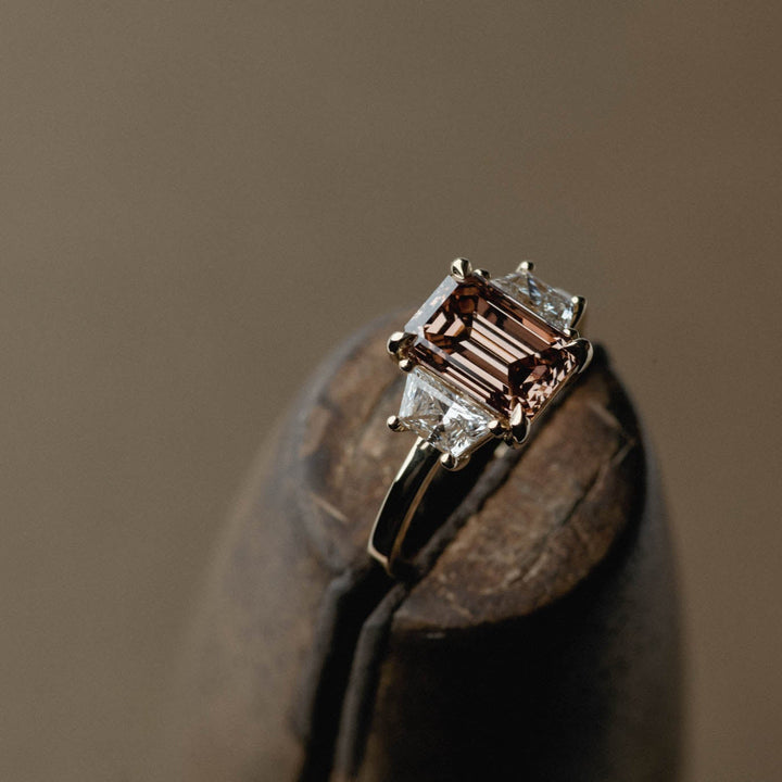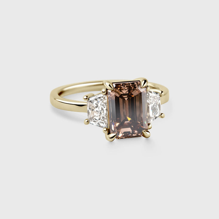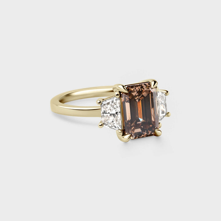 2.52ct Three Stone of Champagne Emerald & Trapezoid
