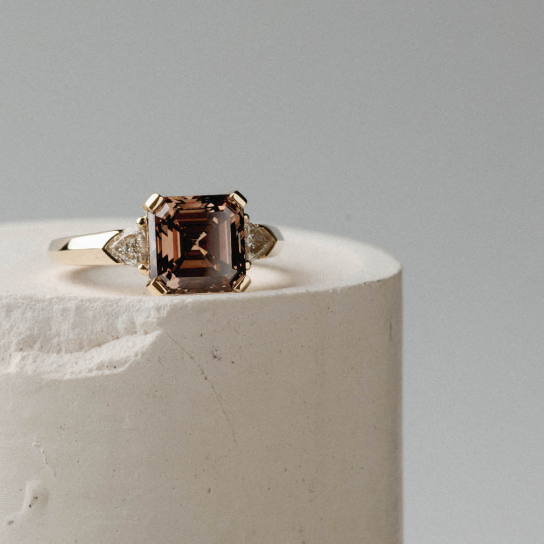 3.02ct Three Stone of Champagne Asscher & Trillion