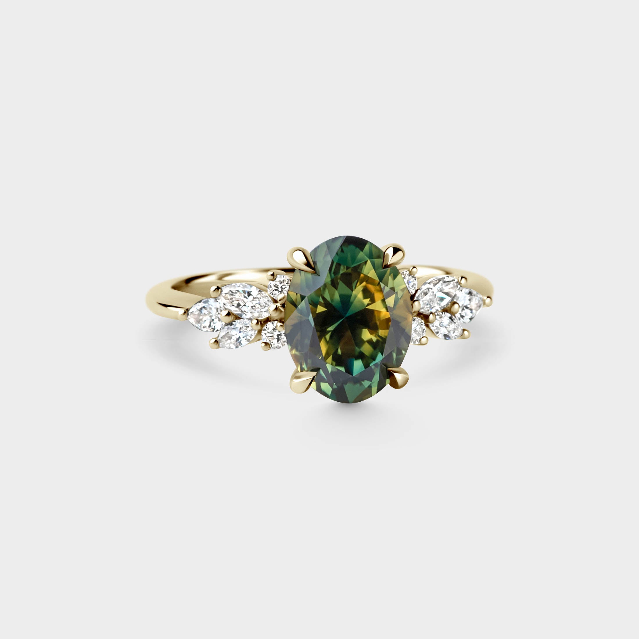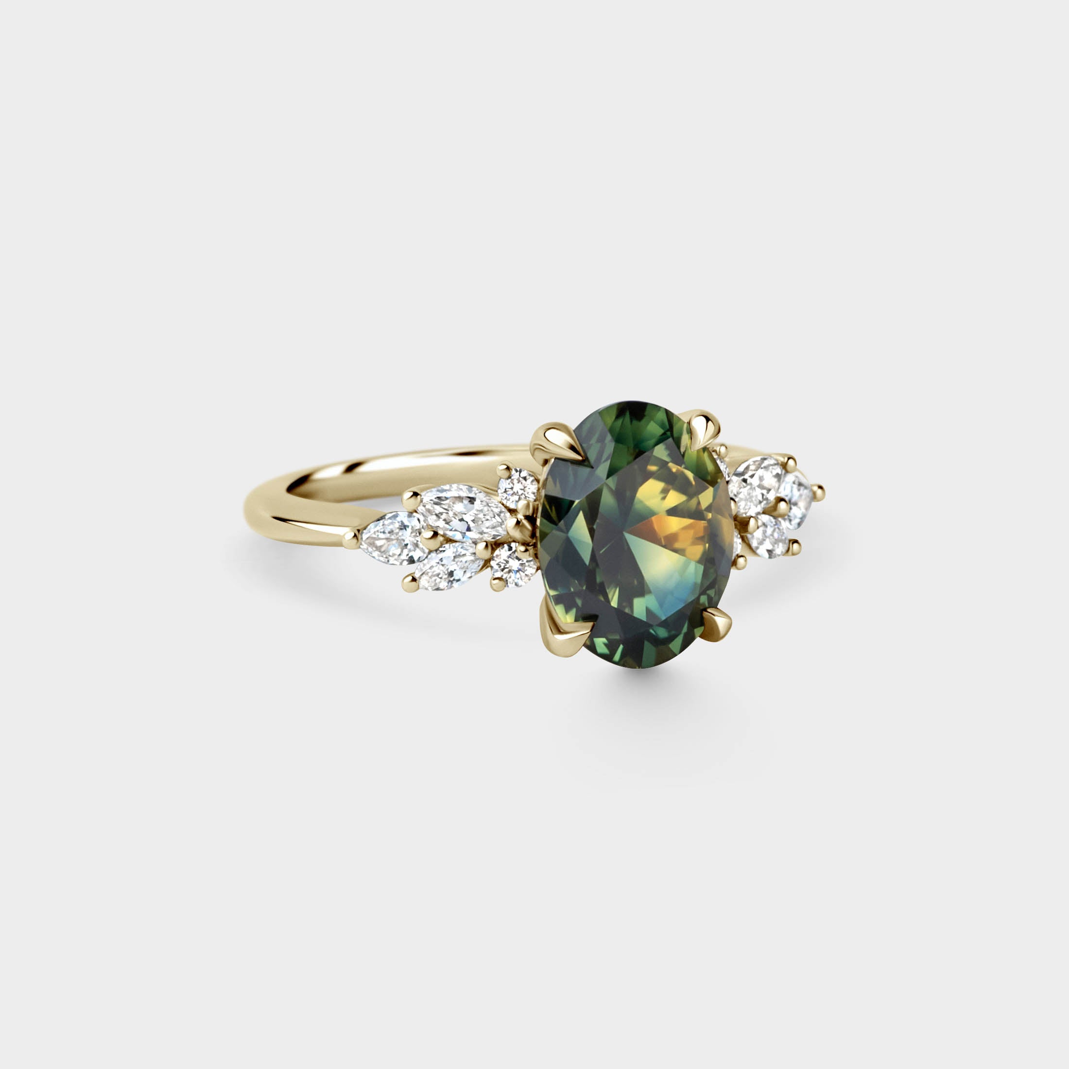 3.21ct Symmetrical Cluster of Oval Parti Sapphire & Diamond