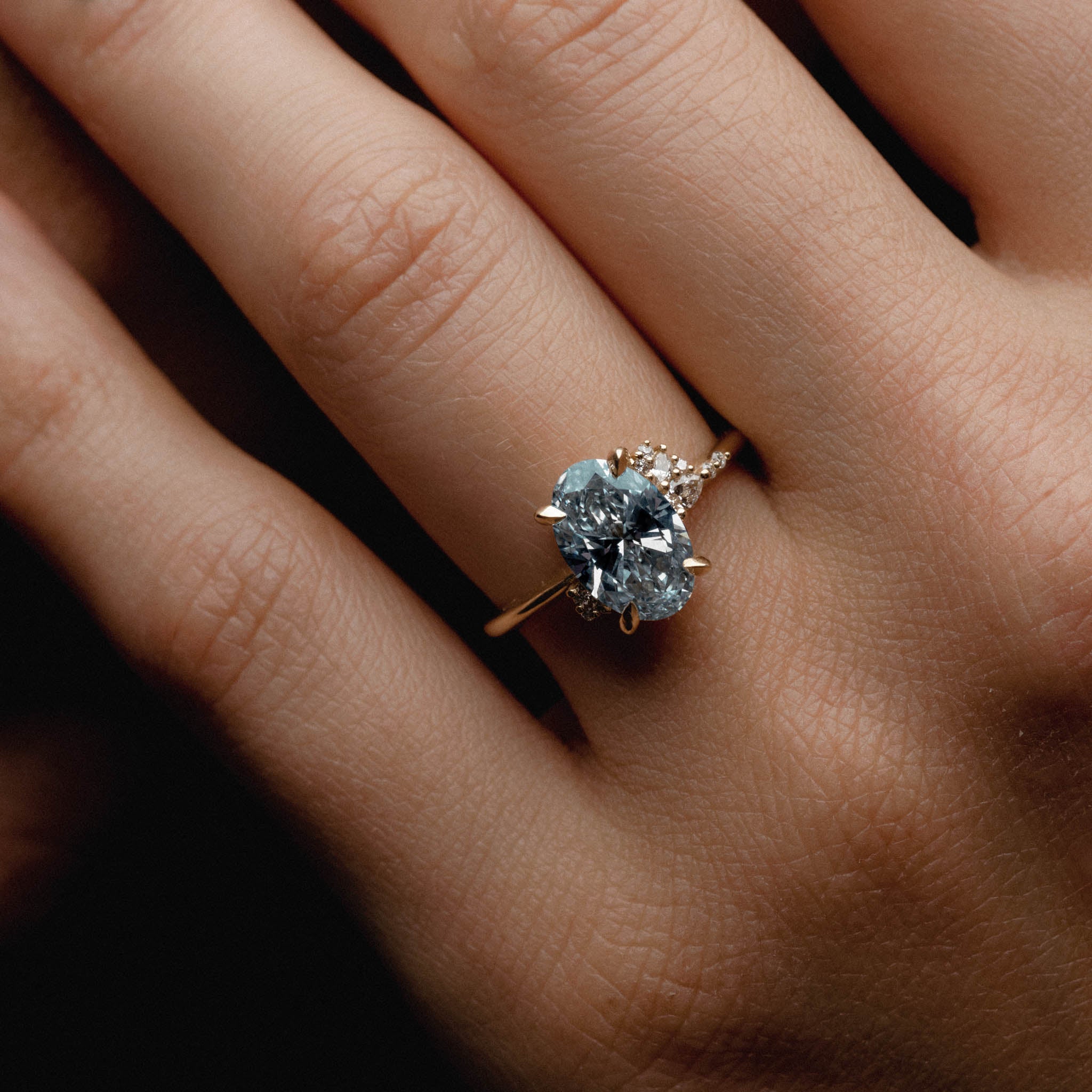 Asymmetrical Cluster of Blue Lab Grown Diamond