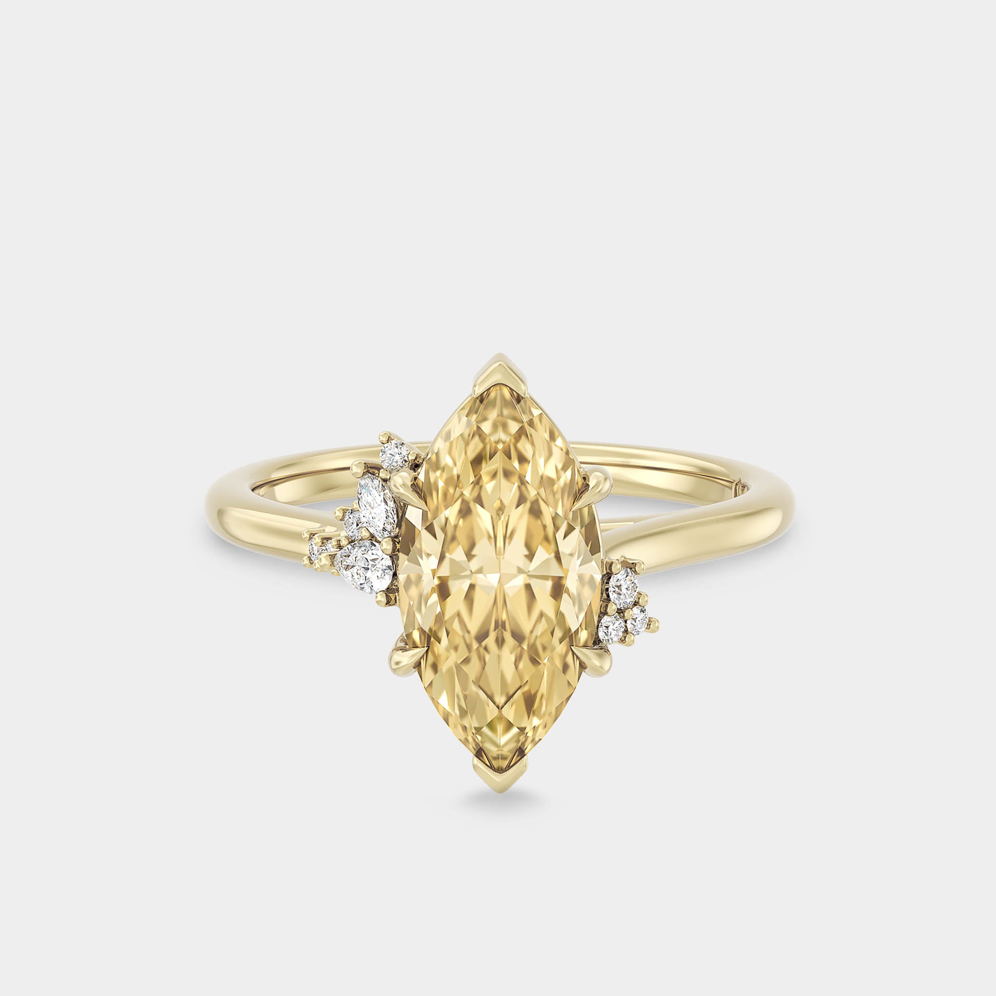 Asymmetrical Cluster of Lab Grown Marquise Yellow Diamond