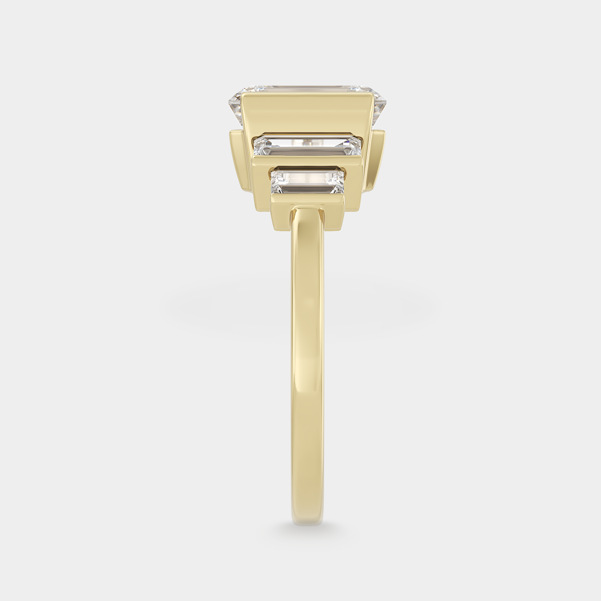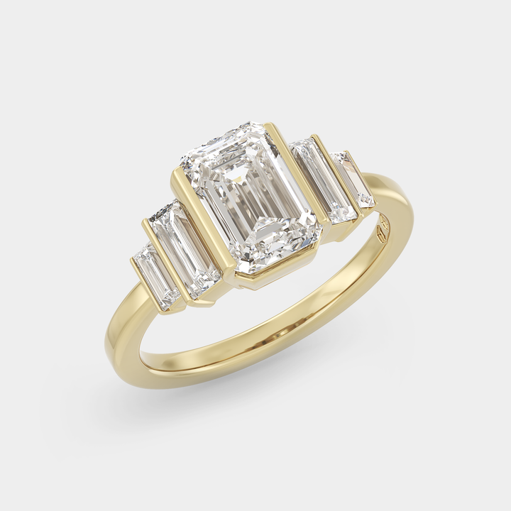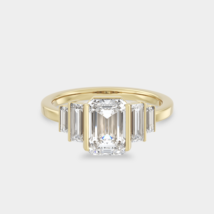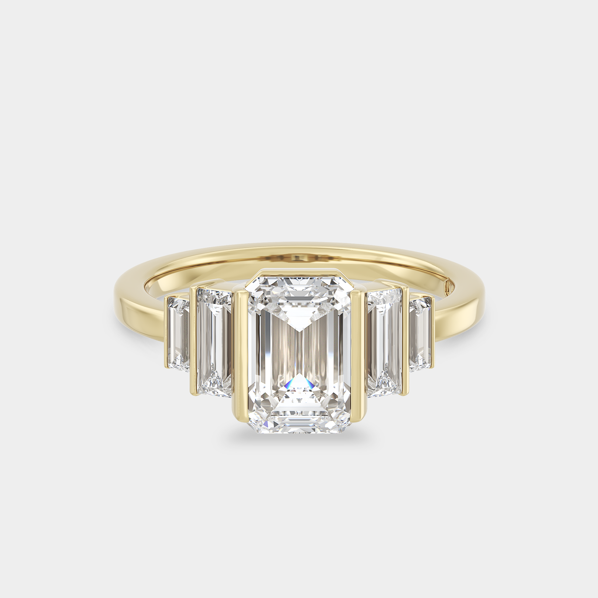 Five Stone of Emerald Cut Lab Grown Diamond & Baguette, Bar Set
