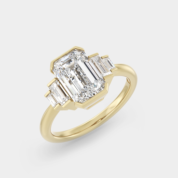 Five Stone of Half Bezel Emerald Cut Lab Grown Diamond & Baguette