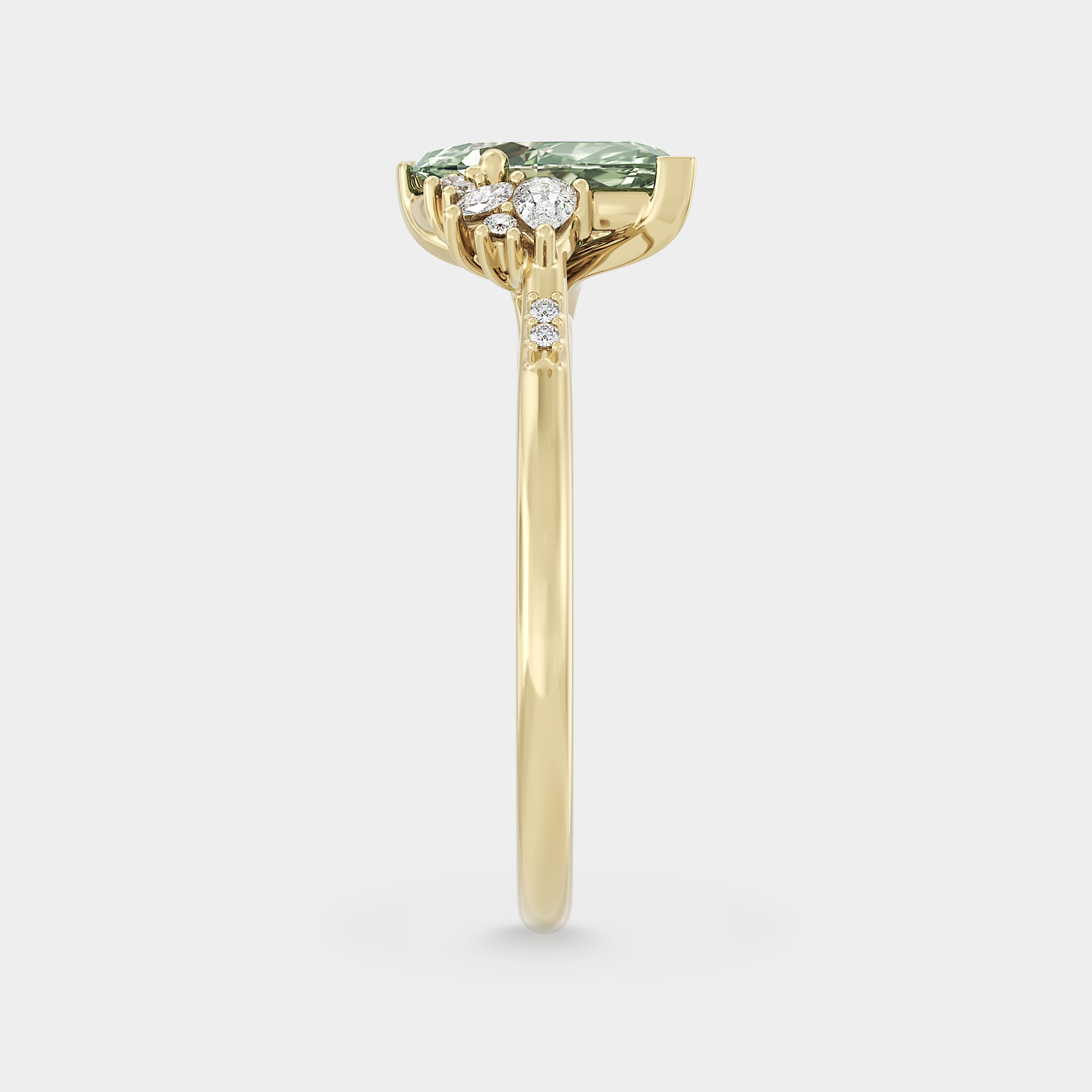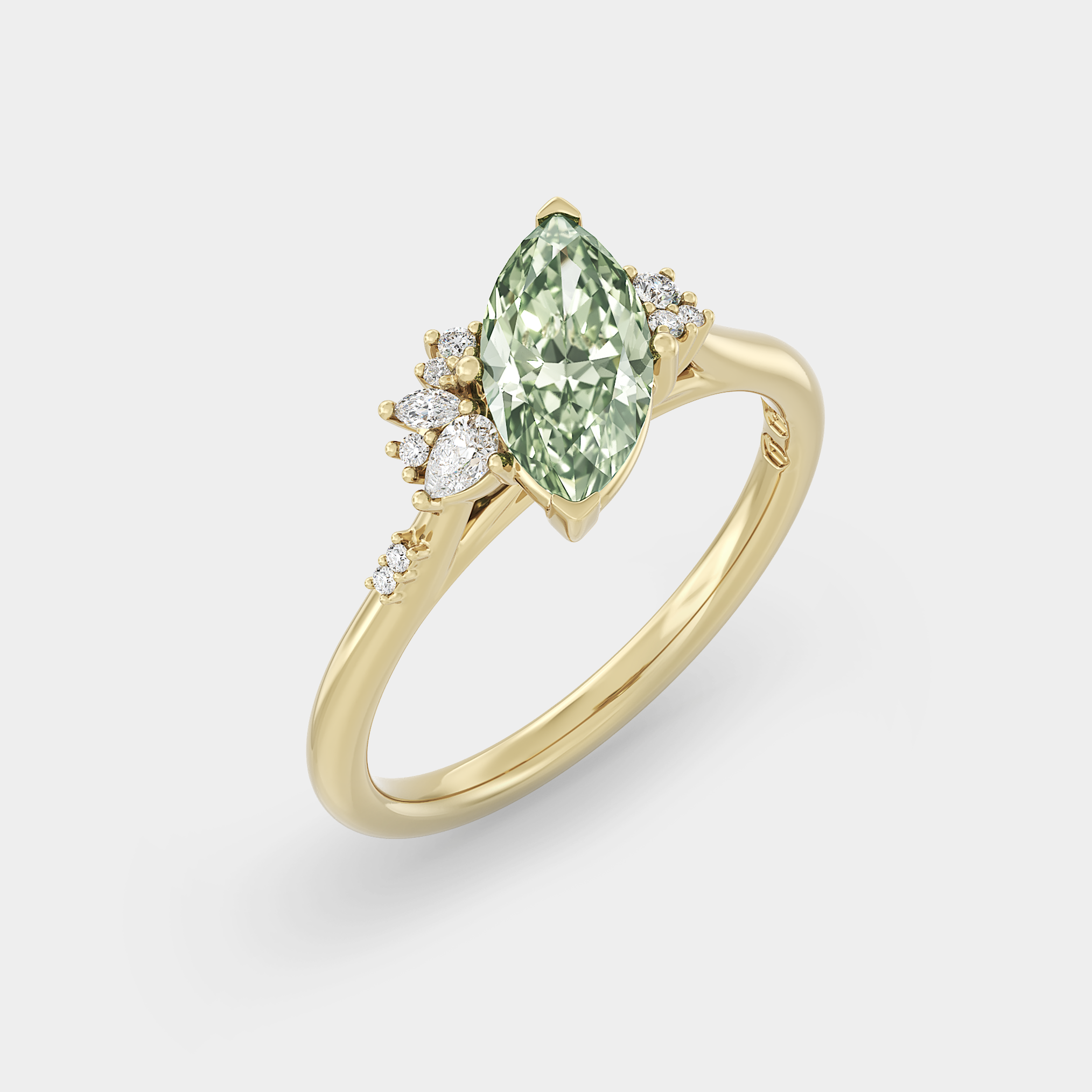 Off-angle Asymmetrical Cluster & Fancy Green Marquise Diamond