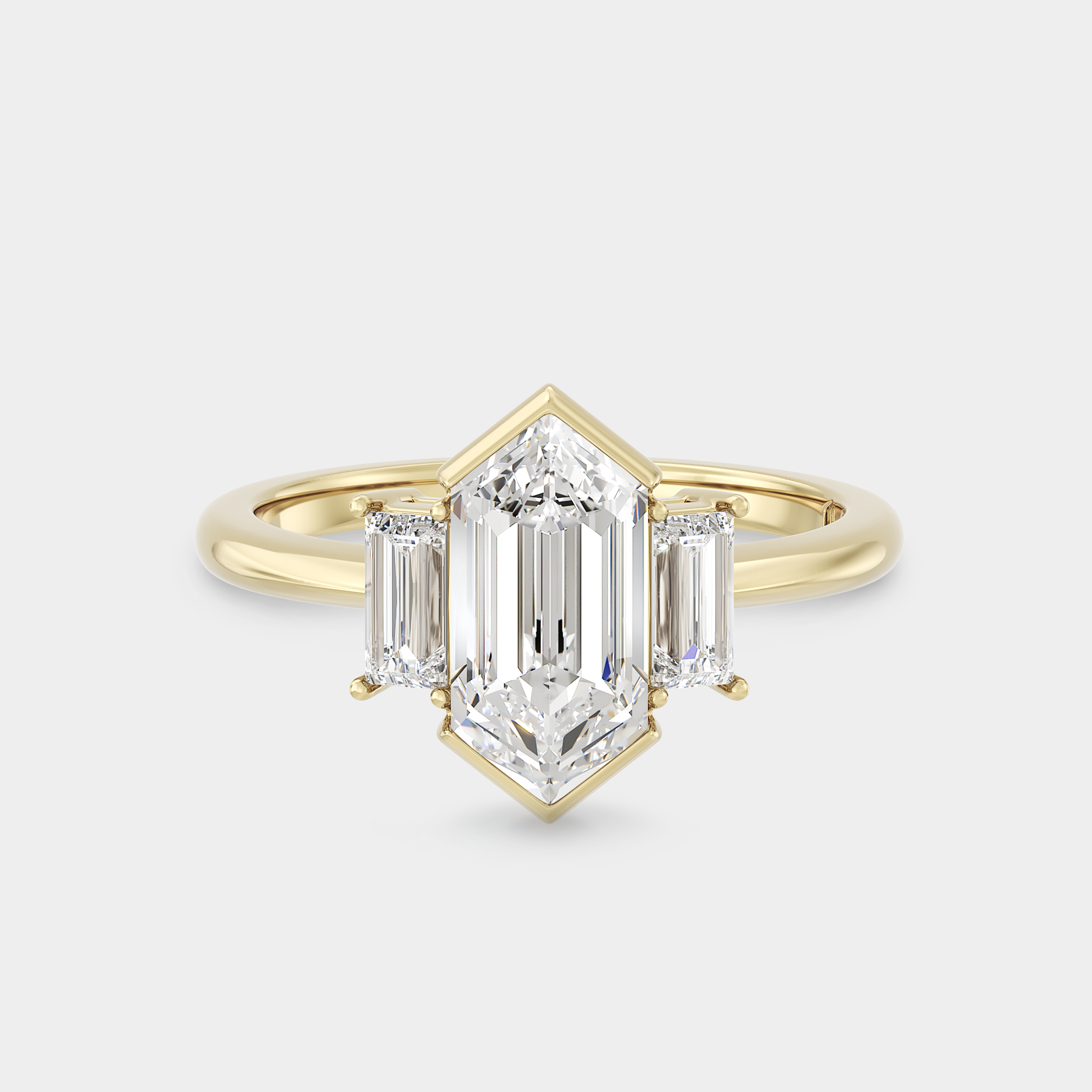 Three Stone of Hexagonal Cut Lab Grown Diamond & Baguette