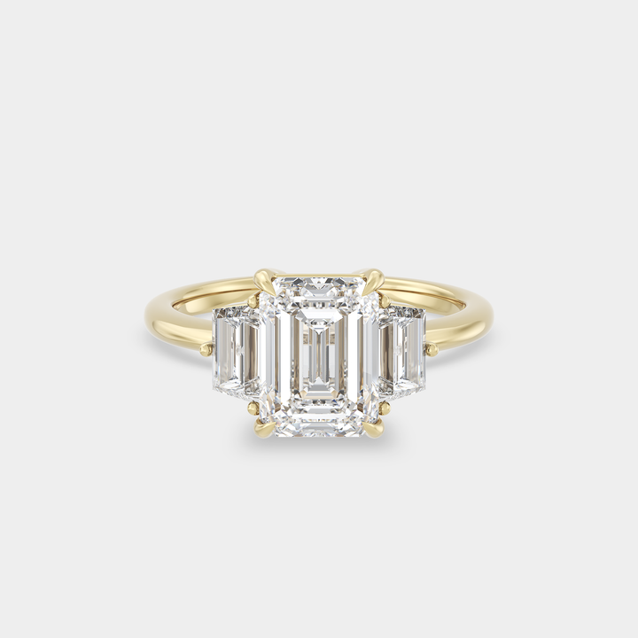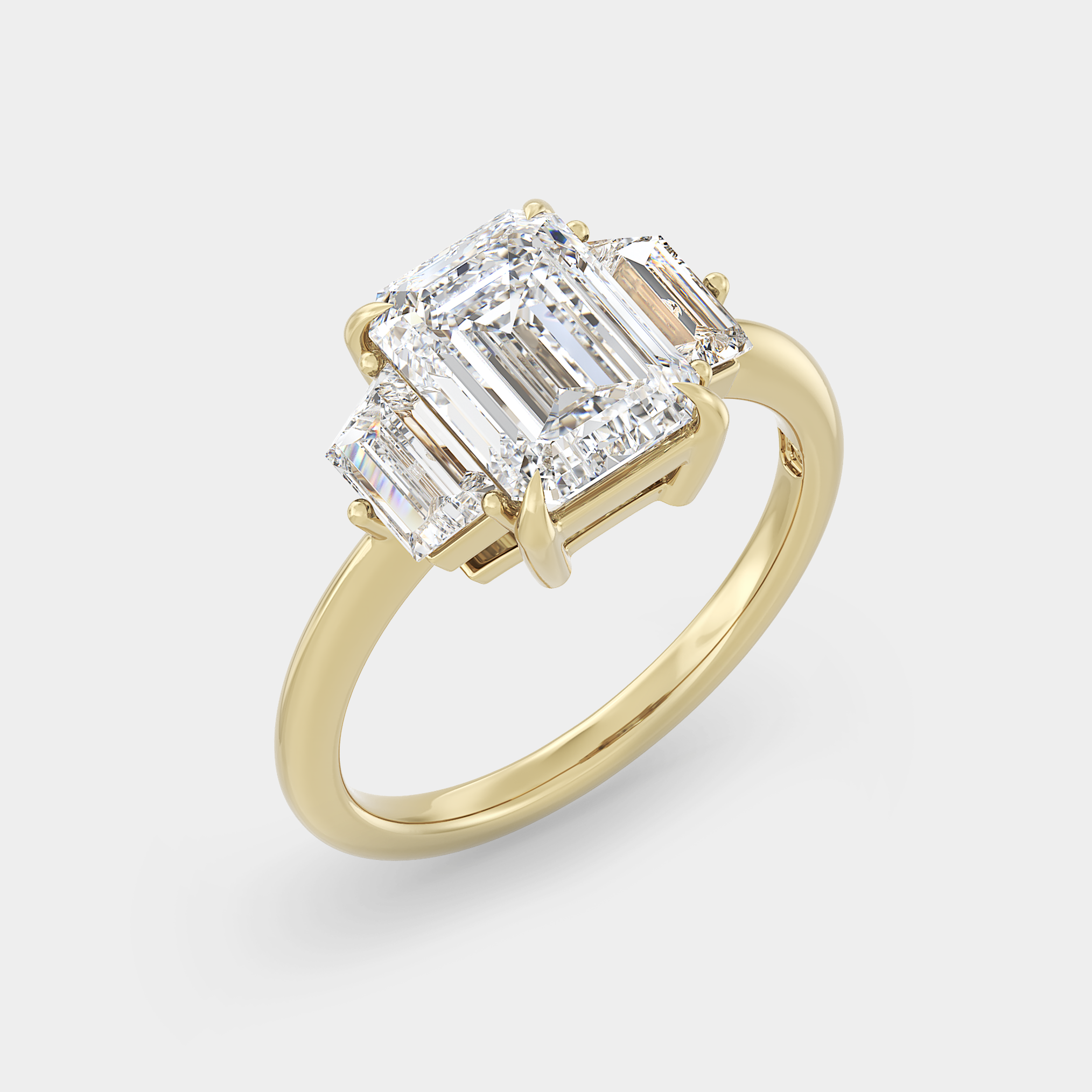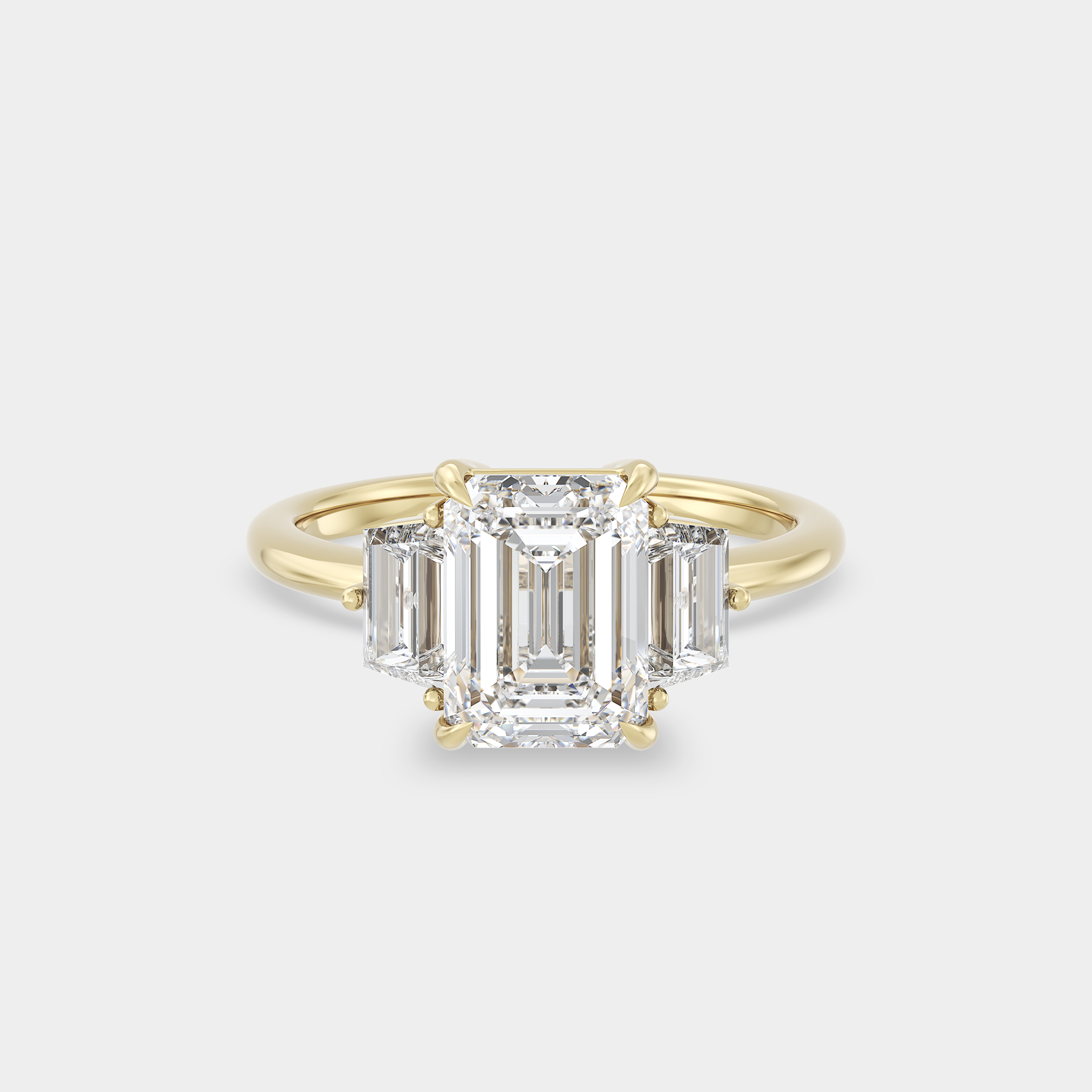 Three Stone of Lab Grown Emerald Diamond & Trapezoid