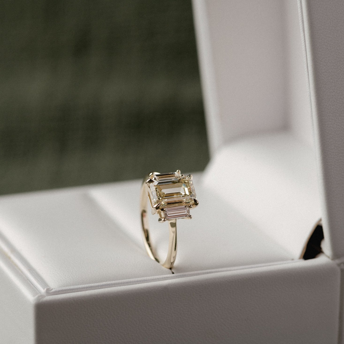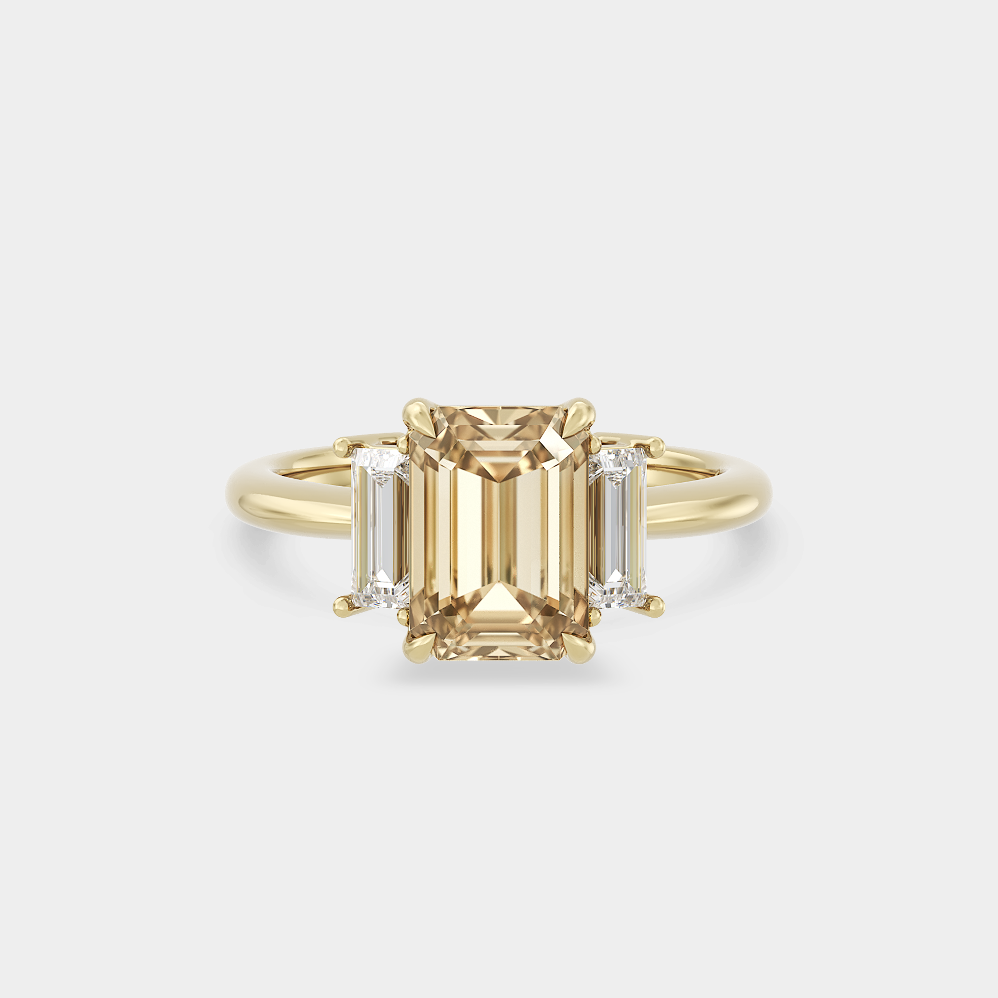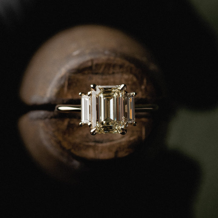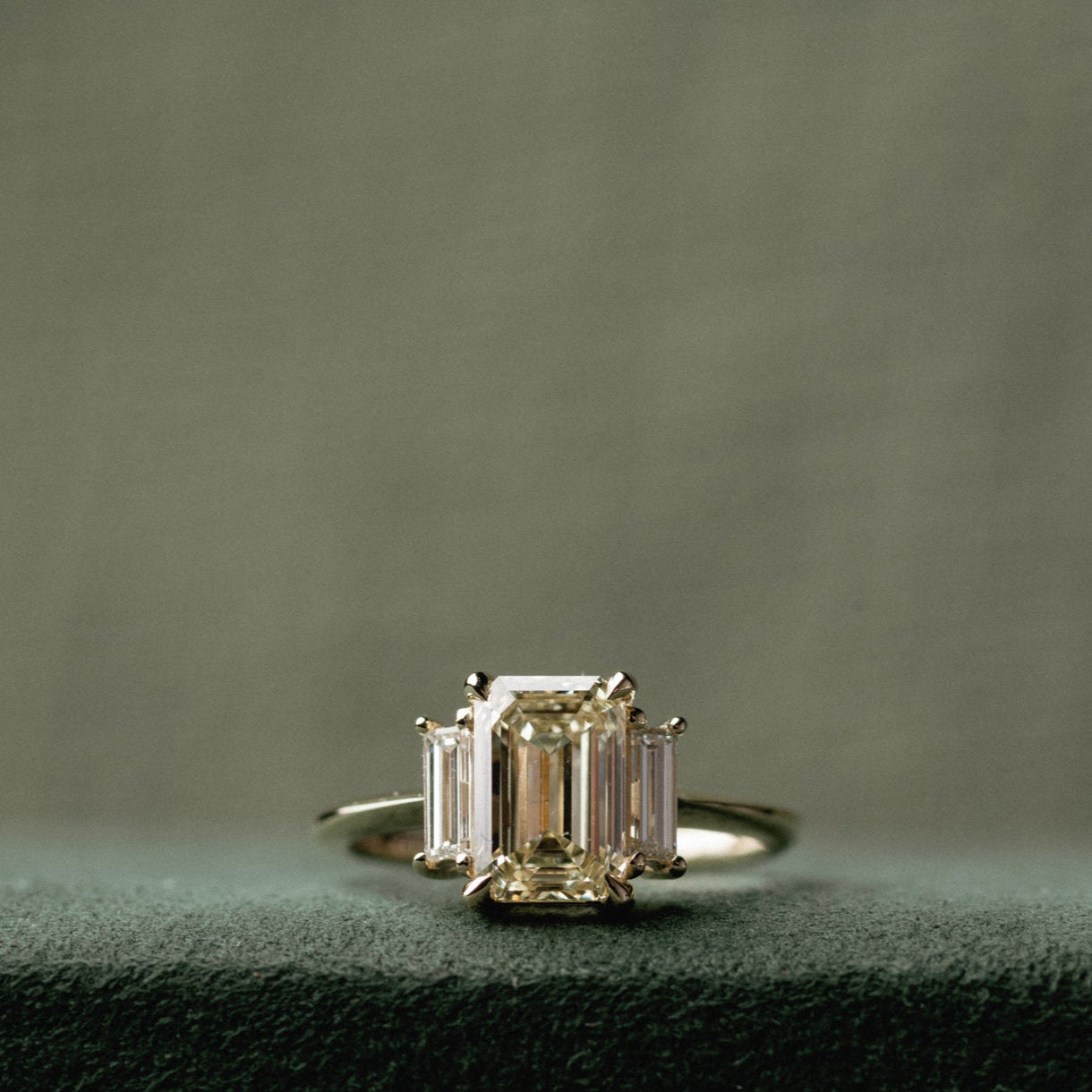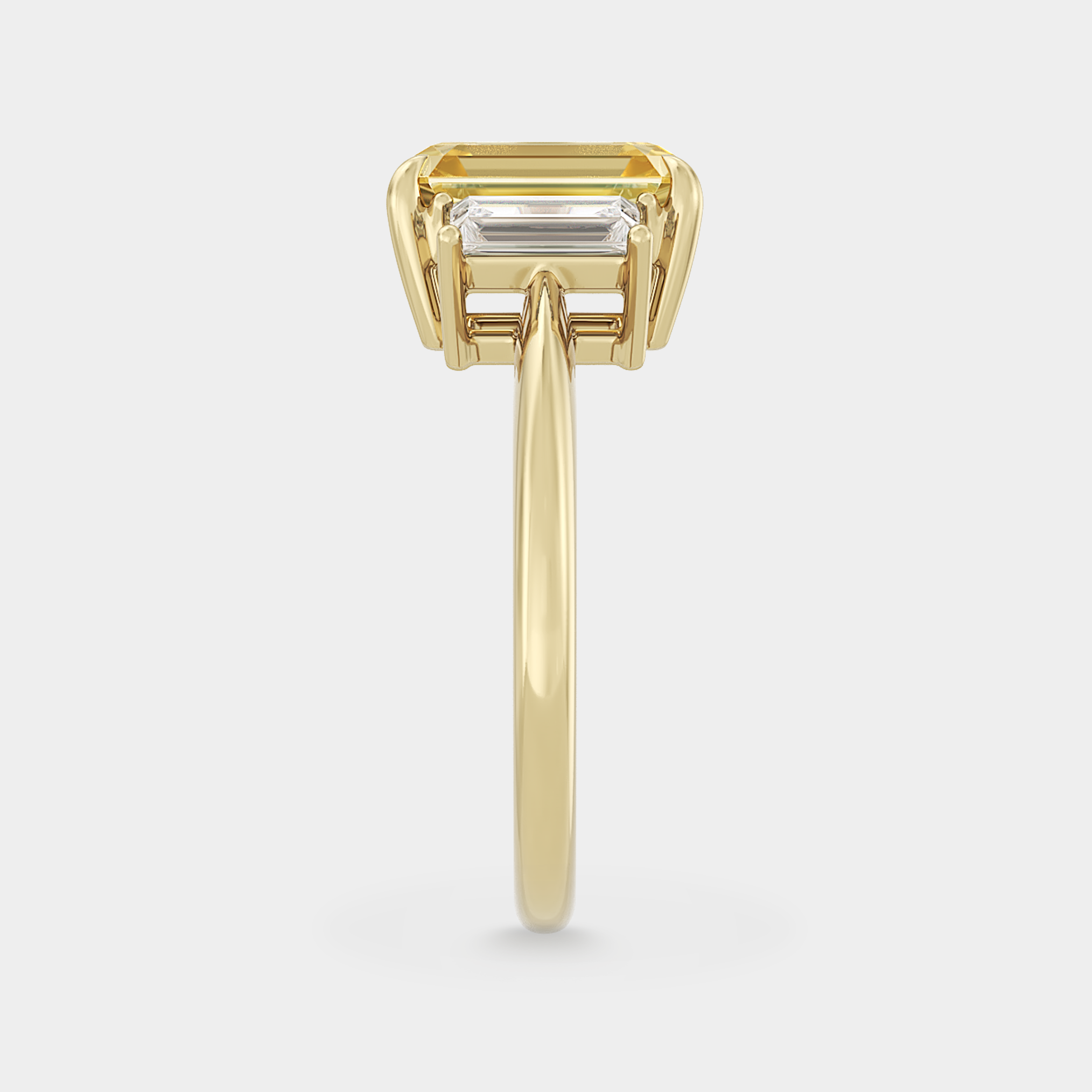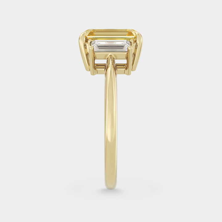 Three Stone of Lab Grown Yellow Emerald Diamond