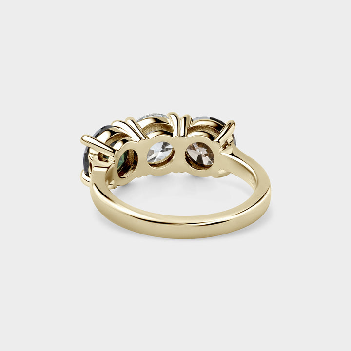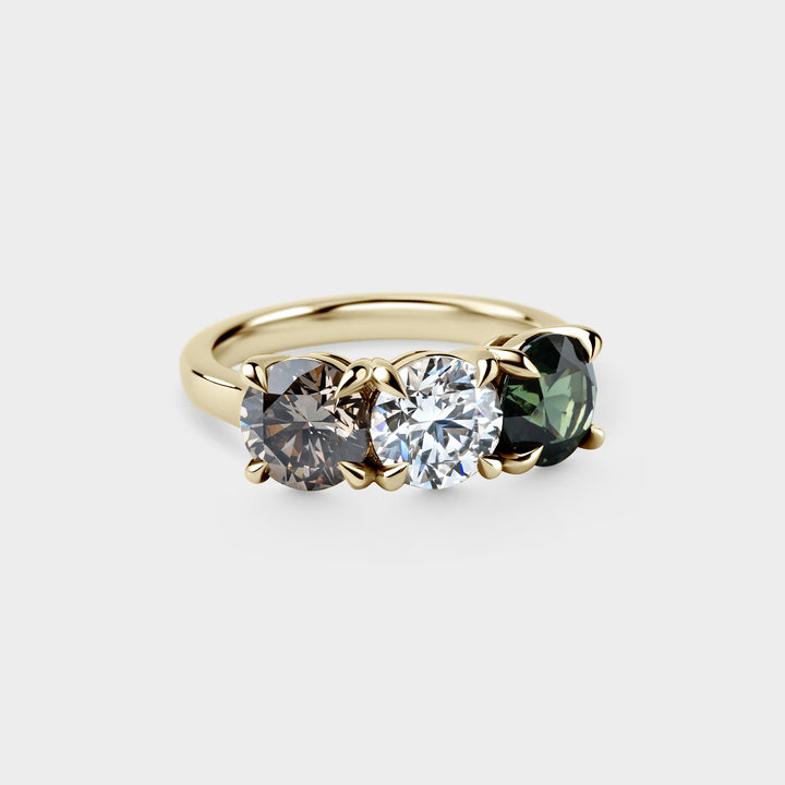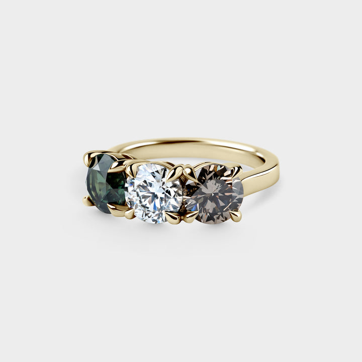 Trilogy of Round White, Champagne & Green Sapphire